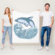 Ilustracion de lindos delfines azules en estilo retro con olas de mar decoración para todos los amantes de los lindos delfines