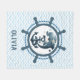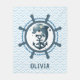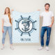Adorable diseño personalizado de manta de pulpa náutica con un delfín lindo y ancla dentro de una rueda de barco con un fondo de patrón de chevron azul y blanco,
