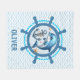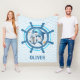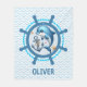 Cubierta de pulpa náutica personalizada con un delfín lindo y ancla dentro de una rueda de barco con un fondo de patrón de chevron azul y blanco,