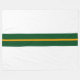 Este diseño deportivo presenta rayas de carreras de color verde y amarillo dorado contra un fondo blanco brillante.