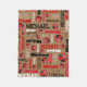 Béisbol deportivo con una manta de nombres personalizada de fondo marrón de madera media. Esta manta de estampado con motivos deportivos tipográficos tiene balones de baloncesto, en y rojo, negro y blanco. El patrón de manta incluye su propio nombre personalizado, actualmente lee Michael. Hay otras bolas deportivas disponibles en este diseño. Diseñado por www.mylittleeden.com