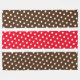 Este audaz y divertido diseño deportivo cuenta con una amplia franja de carreras de centro rojo brillante, delineada en blanco, junto con rayas de borde marrón de cacao. Los festivos puntos de polka blanca embaldosados se extienden por todo el diseño.