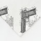 Una imagen del vintage de un diagrama del arma para una arma de mano semiautomática de 45 calibres.