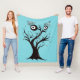Cama de lana de criatura árbol con un dibujo de tinta negra de un personaje extraño que se parece a un árbol con dos ojos grandes y pestañas graciosas sudando en emoción. Puedes personalizar el alegre fondo azul de este diseño con cualquier color que te guste.