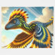 Esta manta de lana tiene un pájaro de dinosaurio encima.
