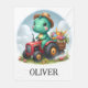 Este adorable y caprichoso diseño personalizado de manta presenta un pequeño y encantador dinosaurio que conduce alegremente un tractor rojo en miniatura llevando flores. Con su expresión lúdica y sus suaves colores de ensueño, esta deliciosa creación añade un toque de encanto a cualquier espacio, atractivo para todos, sobre todo niños y bebés.