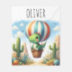 ¡Embarque en un viaje imaginativo con nuestra manta personalizada de pulpa! Un lindo dinosaurio flota sobre un desierto en un globo de aire caliente, creando una escena mágica para las pulseras nocturnas. Personalizar con el nombre de su ser querido por un regalo único.