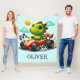 Manta Polar Dinosaurio verde lindo en un auto de carrera