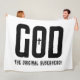 Esta manta de lana tiene un diseño que incluye las palabras "Dios el superhéroe original" en un tipo de letra de Harrison Rough con letras negras en esta cita y tema basados en la fe bíblica. Esta manta está hecha de una pulga de poliéster 100% suave y acogedora de carnicería con una impresión de sublimación de color vibrante de borde a borde y un punteo de doble borde con una máquina trasera de color blanquecino lavable.
