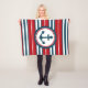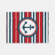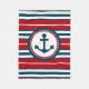 Diseño náutico con decoración de ancla en forma redonda sobre fondo rayado rojo, azul y blanco