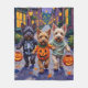Adorables Skye Terriers vestidos con disfraces divertidos de Halloween llevan cubos de calabaza mientras hacen 'truco o trato' bajo el cielo iluminado por la luna. Este diseño festivo destaca el largo y fluido pelaje de la raza, sus orejas erguidas y personalidad leal, capturando perfectamente la atmósfera espeluznante pero divertida de la noche de Halloween. Una celebración emotiva para los amantes de los Skye Terrier, entusiastas de los perros y fanáticos de Halloween por igual.