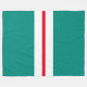Este elegante diseño deportivo presenta rayas de carreras verticales blancas y rojas brillantes contra amplias rayas verde azuladas.
