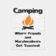 Camping Donde se tocan amigos y mariscos. Este es un dicho gracioso que funciona alrededor de la fogata. El aire fresco, los sonidos de la naturaleza y de los amigos... ¡no es mejor que eso! Este sencillo diseño negro y naranja lo dice todo.