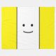 Este divertido diseño presenta un sencillo, dulce y sonriente dibujo de la cara, centrado en una amplia franja vertical blanca adosada por rayas amarillas brillantes.
