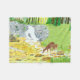 Una manta de lana con una hermosa escena forestal incluyendo doe y fawn bebiendo de un arroyo cerca de una cascada. Obra de arte original de W.B.