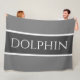 Este diseño oceánico bonito presenta texto DOLPHIN dentro de una franja central gris oscura resaltada con pinstripes blancas contra franjas exteriores grises blandas.
