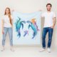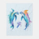 Ilustracion abstracto con dos lindos delfines azules con manchas naranjas y moradas