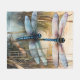 Dos libélulas azules se abalanzan sobre el agua y cañas sobre esta hermosa manta de lana. Perfecto para los amantes de la naturaleza y del exterior.