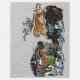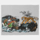 Dragón verde chino-oriental de Asia versus tigre blanco en el paisaje con cascada, rocas y olas de agua . Dos criaturas espirituales en el Feng Shui clásico representando a Yin Yang. Ilustracion