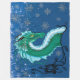 Retrato de perfil de dragones azul, verde y verde azulado con nieve cayendo por todas partes. Rosa tribal negro.