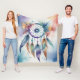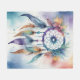 Se trata de una pintura acuarela de un soñador con flores y plumas de colores. El fondo es azul claro con toques de color. Esta imagen podría interpretarse de muchas maneras diferentes. Podría verse como una representación del poder de los sueños, la importancia de la naturaleza o la belleza del mundo que nos rodea. También podría verse como un símbolo de protección, esperanza o nuevos comienzos. Se dice que las plumas atrapan los malos sueños y los atrapan en la web, mientras los buenos sueños pasan y llegan al soñador.