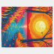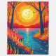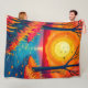 Wrap yourself in the warmth of a magical sunset with this cozy fleece blanket. The design features a stylized, vibrant nature landscape with a glowing sun, fiery foliage, and a peaceful lake reflection. An aesthetic and relaxing home accessory perfect for movie nights or adding a pop of color to your bedroom.