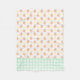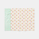 Melocotones dulces, flores retro blancas y gingham verde claro
