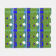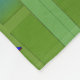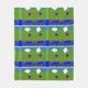 Una manta de la tierra: tierra, casas, cielo, nubes, océano y olas.