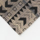 Negro y blanco altamente detallado con patrones geométricos y formas elefante tribal africano en una posición hacia adelante enmarcada en la parte superior e inferior por formas geométricas intrincadamente estampadas bordes en negro. El fondo es un patrón de tablas de madera marrón claro. Fantástica manta de lana de moda para la decoración de las habitaciones para adolescentes. Es atrevido, hermoso, y seguro que complacerá al amante de los elefantes en su vida.