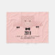 Una manta personalizada que celebra el Año Nuevo chino. Una gran cara de cerdo rosa con una corbata de arco formal. Levantado por sus pezuñas negras y mirando sobre una mesa. Dibujo tierno y caprichoso. Envuelto en un fondo rosado con corazones apagados. Listo para celebrar el año del cerdo 2019.