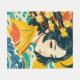 Este retrato de primer plano de un chica vietnamita capta el espíritu del país en sus vivos colores y líneas audaces. La cara del chica se representa en colores primarios, con resaltados blancos para crear una sensación de profundidad y dimensión. El viento sopla su cabello