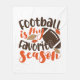 La frase "El fútbol es mi temporada favorita" se asocia comúnmente con varias prendas de vestir y mercaderías que celebran la cultura futbolística, particularmente en el otoño, cuando la temporada de fútbol está en pleno apogeo.