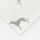 El galgo siluetea la manta blanca y gris del modelo del paño grueso y suave.