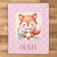 Color de agua personalizado lindo diseño de zorro pequeño con fondo de puntos rosados y crema y polka