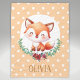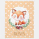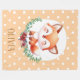 Color de agua personalizado lindo diseño de zorro pequeño con fondo naranja y puntos de polka