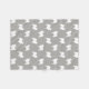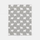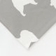El samoyedo siluetea la manta blanca y gris del modelo del paño grueso y suave.