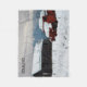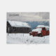 Escena rural, invernal, con un camión rojo, ruinoso, con nieve, sentado cerca de una cabaña destartalada cerca de Sandpoint, ID. También aparece un texto de personalizable que dice "IDAHO".