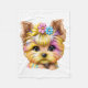 Este diseño cuenta con un yorkie infantil dulce y adorable con montones de flores y brillo.