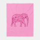 Una manta de lazo en una gráfica digital de un elefante ricamente adornado, en un patrón floral de tonos rosas, de rosa pálido a fucsia profunda, con un fondo rosa medio
