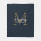 Elegant Script Metallic Navy Blue Gold Monogram Fleece Blanket