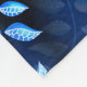 Una manta azul de planta con un patrón botánico hecho de un ilustracion vector de bonito de un motivo floral de una planta con hojas azules y una red blanca sobre ellas bellamente arreglada sobre un patrón ligeramente transparente de la misma baldosa sobre fondo azul oscuro.