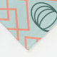 Esta manta de lana media tiene un diseño art deco de diamantes naranjas con ángulos rectos dentro y círculos verde azulados con ovales superpuestos, todos repitiendo a través del patrón. Si te gusta el diseño pero prefieres colores diferentes, envíame un mensaje.