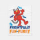 Prepárense para una Halloween totalmente espeluznante con este diseño "Frightfully Fun and Furry" que presenta a Elmo vestido como un lindo gato negro. Completada con orejas puntiagudas, una cola difusa y una copa de intestino, Elmo está listo para unirse a la diversión de Halloween. Rodeado de murciélagos juguetones y una curiosa silueta de gato azul, este diseño capta el espíritu lúdico y alegre de la fiesta, perfecto para niños y aficionados a Plaza Sésamo por igual.