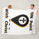 Esta manta de lana tiene las palabras "En el punto con Cristo" en una letra en negrita con letras negras en la sombra amarilla más una cruz dentro de una señal de ubicación del mapa con este tema de cita basada en la fe. Esta manta está hecha de una pulga de poliéster 100% suave y acogedora de carnicería con una impresión de sublimación de color vibrante de borde a borde y un punteo de doble borde con una máquina trasera de color blanquecino lavable.
