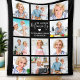 Manta de collage de fotos conmemorativas con un elegante diseño blanco y negro. Cita: "En la memoria amorosa". Esta manta de recuerdo muestra 11 de tus fotos y nombres favoritos. DERECHOS RESERVADOS © 2020 Judy Burrows, Black Dog Art - Todos los derechos reservados. En la memoria amorosa 11 Collage de fotos Funda de la Fleece