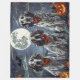 Descanse el espíritu espeluznante con este inquietante diseño de Halloween que presenta una manada de perros bajo un cielo oscuro, iluminado por la luna, rodeados de bates voladores y calabazas brillantes. Perfecto para los amantes de la diversión con sus peludos amigos.