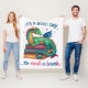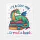 Diseño vibrante y colorido con un montón de libros, dragón colorido encima y hongo. El colorido texto dice: "Es un buen día para leer un libro". Este diseño está disponible en una amplia variedad de productos.