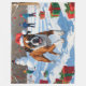 Una ilustración navideña conmovedora que presenta a un perro alegre jugando en la nieve, usando un sombrero de Santa y rodeado de cajas de regalo coloridas. En el fondo, los niños construyen un muñeco de nieve junto a un árbol de Navidad cubierto de nieve, creando un invierno mágico y alegre. Perfecto para difundir alegría navideña y capturar la magia de la Navidad.