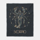 manta de lana personalizado con constelación de signos de zodiaco Scorpio con "Scorpio" en tipografía mística con fondo azul oscuro.