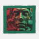 Divine Essence" irradia fuerza y serenidad con una cara metálica bañada en tonos rojos, verdes y dorados. Rodeado de humo, simboliza orgullo cultural, resiliencia y belleza intemporal